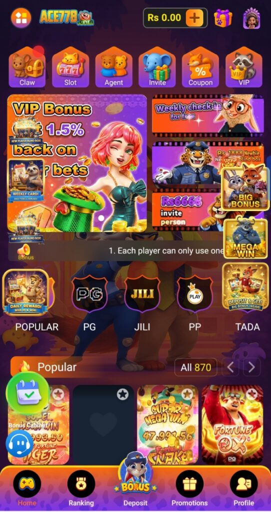 Most importantly, Ace778 allows real-money gaming. In other words, players can deposit real cash, play games, and withdraw actual winnings securely. As a result, the platform feels more exciting and rewarding.