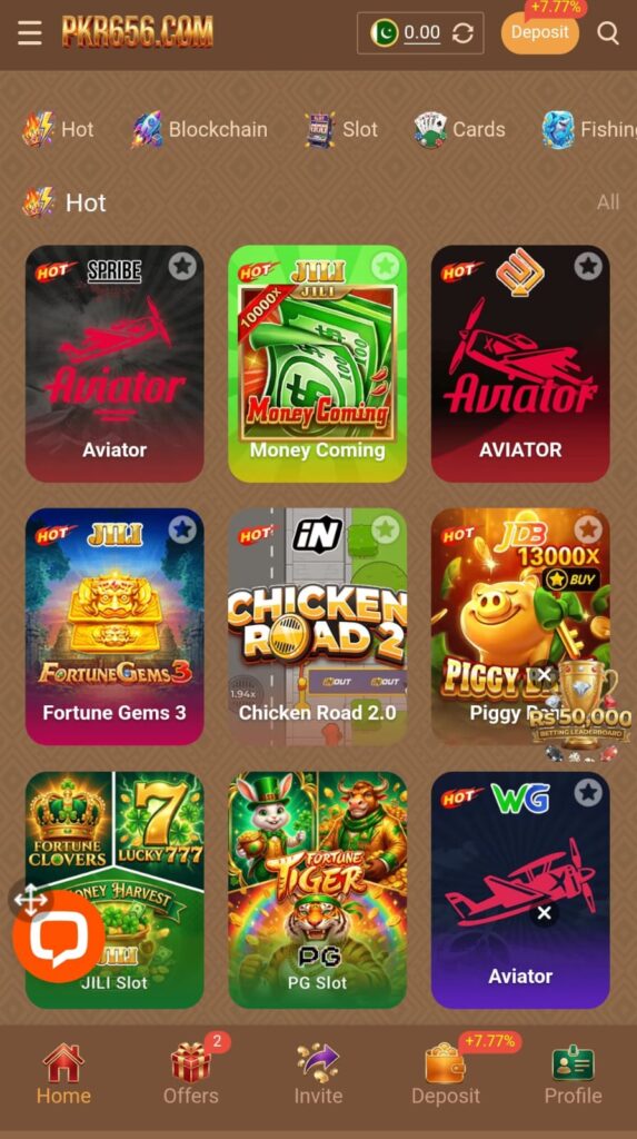 PKR656 Game is an Android gaming application offering multiple casino style and casual games in one platform. It combines gameplay, wallet integration, and reward-based participation for Pakistani users specifically.