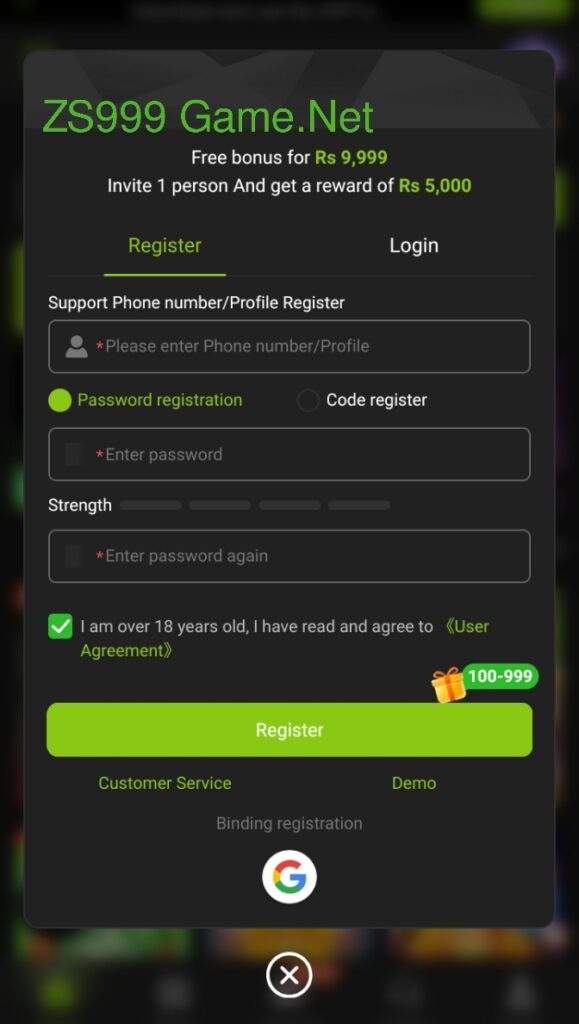 How to Register ZS999 Game Login